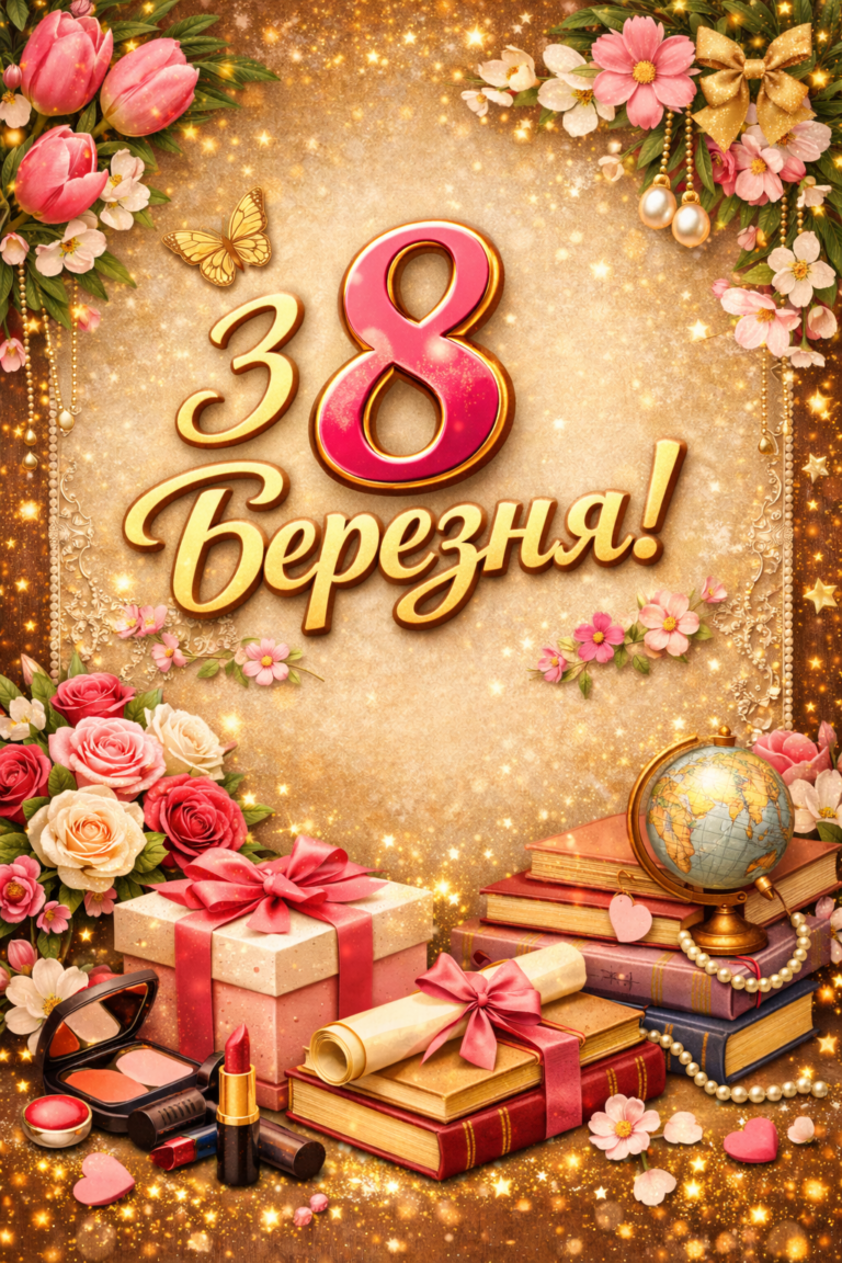 Це особлива нагода висловити щиру повагу й вдячність жінкам, які своєю працею, знаннями, талантом і щоденною наполегливістю творять атмосферу нашого закладу освіти. Саме завдяки Вашій мудрості, відповідальності, доброті, професіоналізму та цілеспрямованості навчальний процес наповнюється змістом, натхненням і прагненням до розвитку. Ви надихаєте, підтримуєте, допомагаєте долати труднощі та впевнено рухатися вперед.